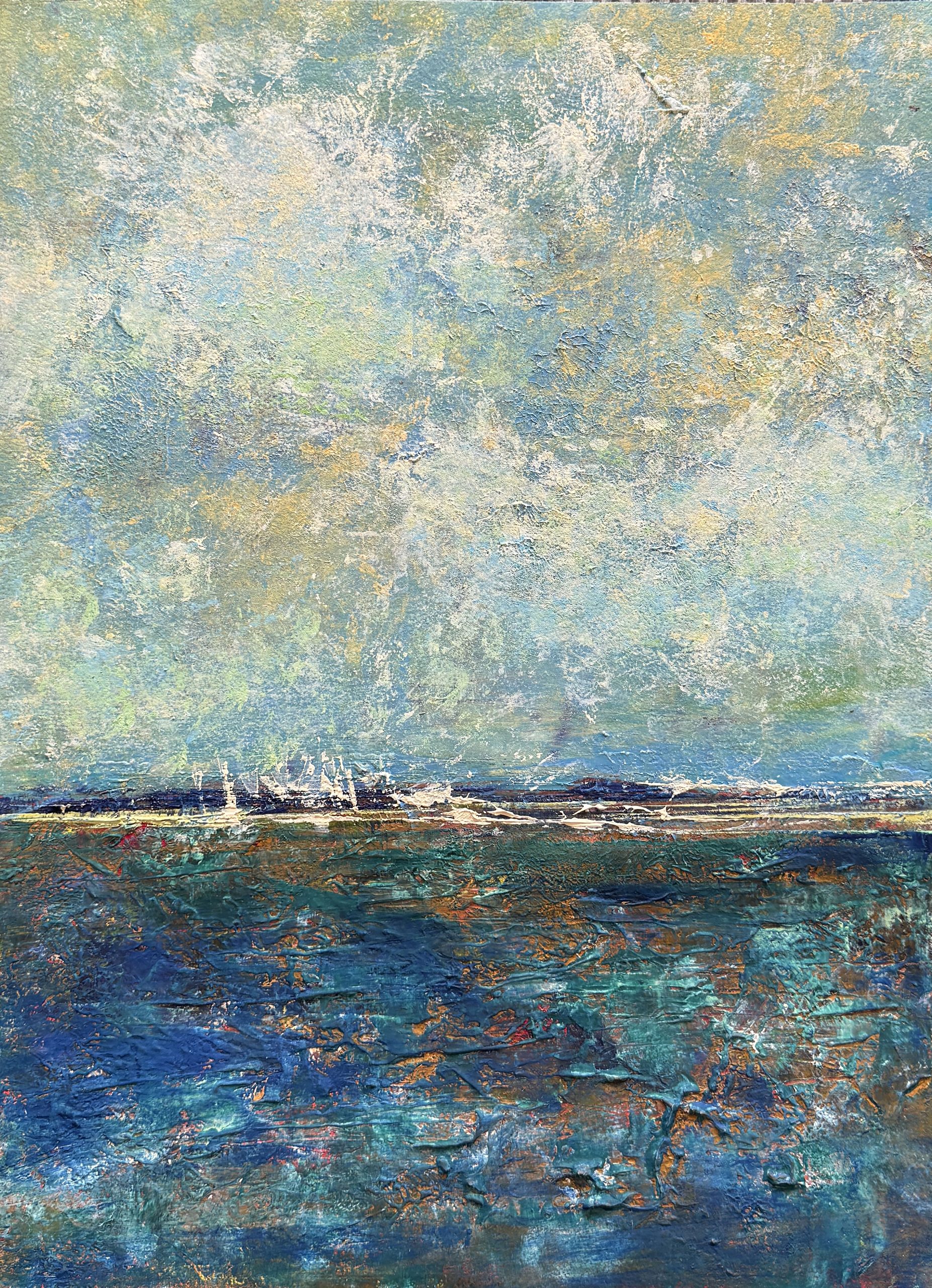 - Julia Redwine "To The Shore" Oil & Cold Wax 17"x13"x2"