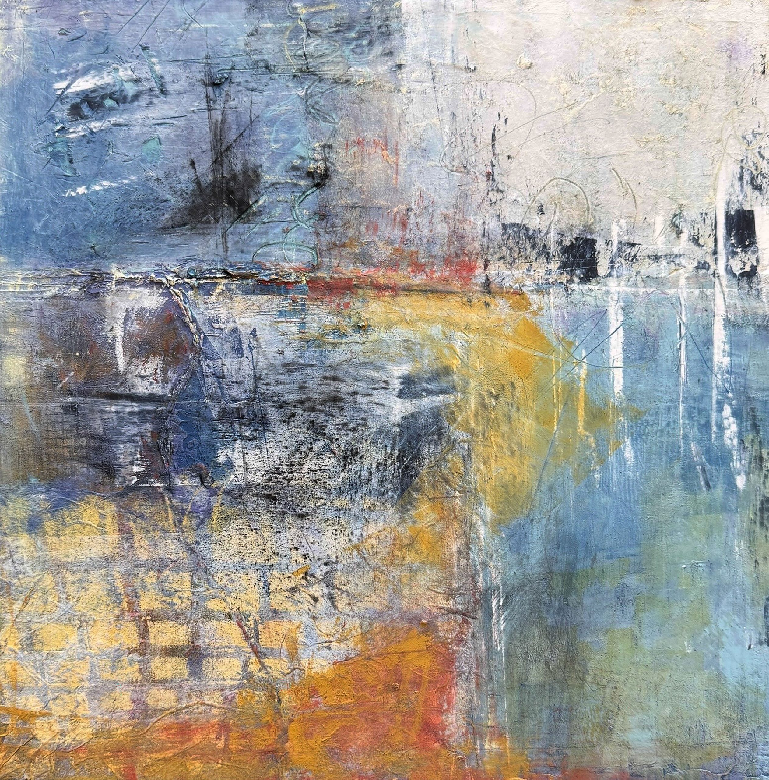 - Julia Redwine "Misty" oil and cold wax on board frames 12"x12"